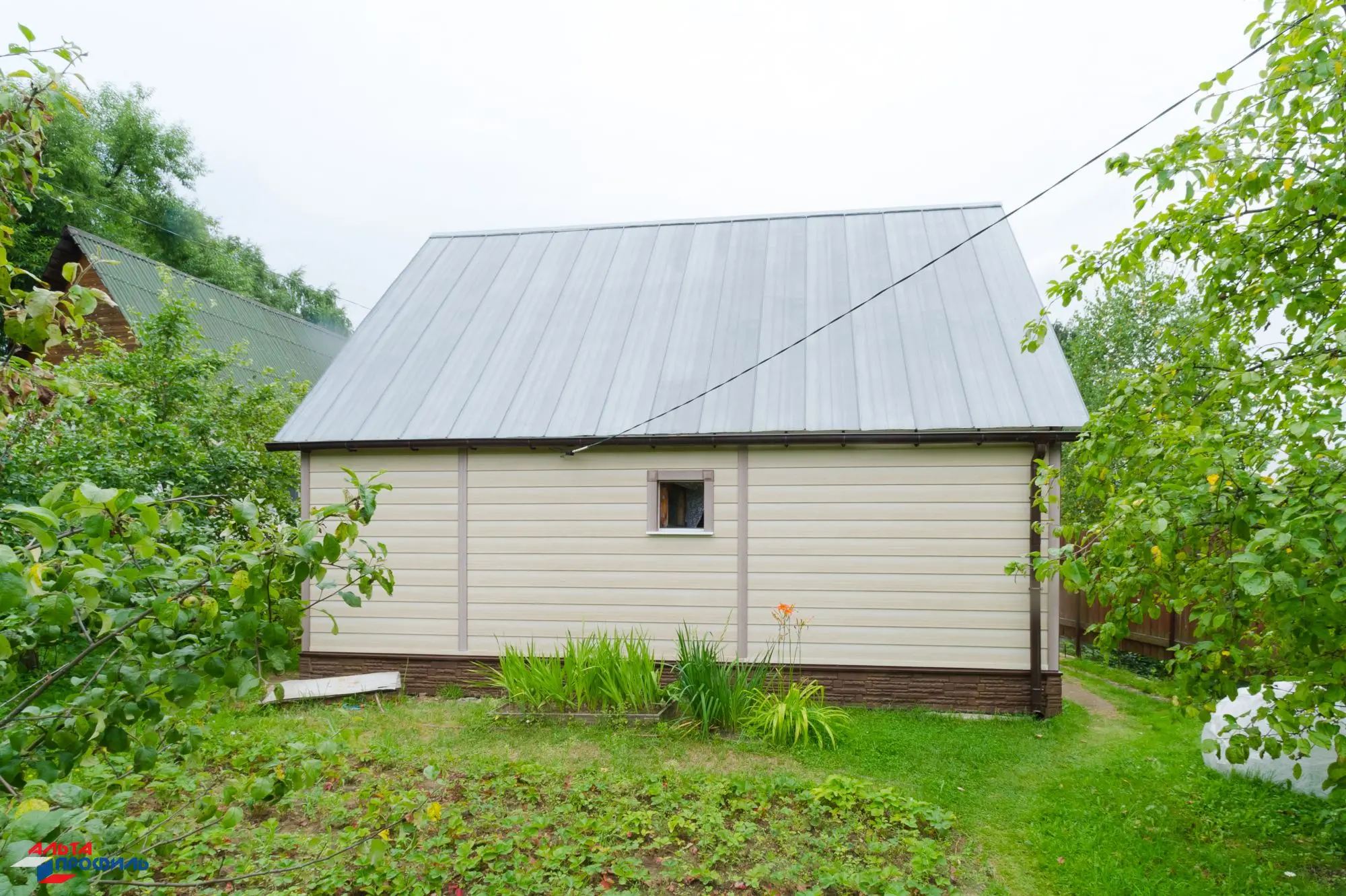 Благодаря простой системе крепления и удобной форме панелей двухпереломным малым сайдингом «Блок-хаус» можно отделать строения любых размеров, вплоть до самых небольших – бани, беседки, гаражи и пр.