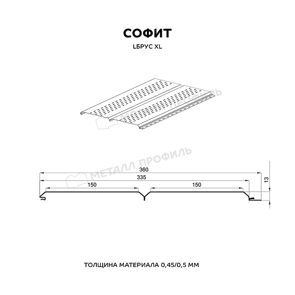 Софит МЕТАЛЛ ПРОФИЛЬ перфор. Lбрус-XL-14х335 NormanMP (ПЭ-01-3020-0.5)
