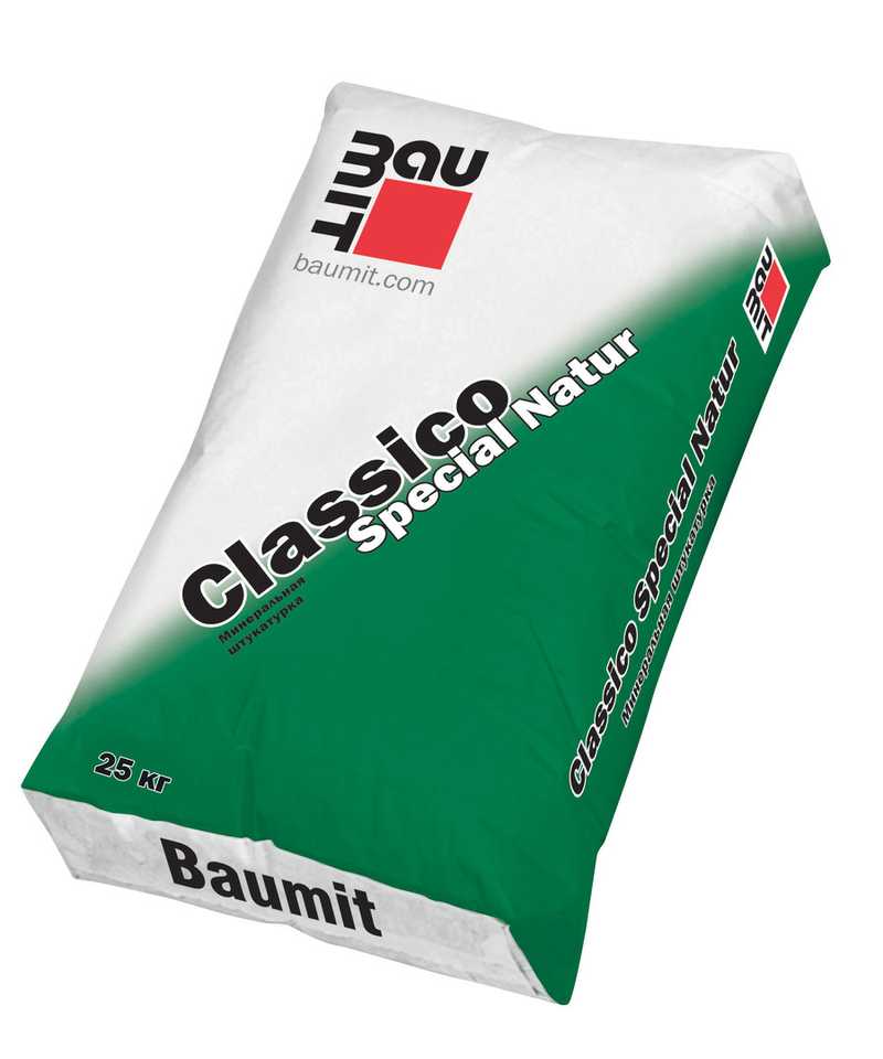 Baumit Classico SpecialNatur - минеральная тонкослойная декоративная штукатурка серого цвета на основе цементного вяжущего с фактурами «шуба» и «короед» для внутренних и наружных работ. Защита и декоративное оформление фасадов и интерьеров. Наносится на старые и новые минеральные штукатурки, шпаклевки, а также бетон. Рекомендуется к использованию в составе систем фасадных теплоизоляционных композиционных с наружными штукатурными слоями. Для ручного и механизированного нанесения.